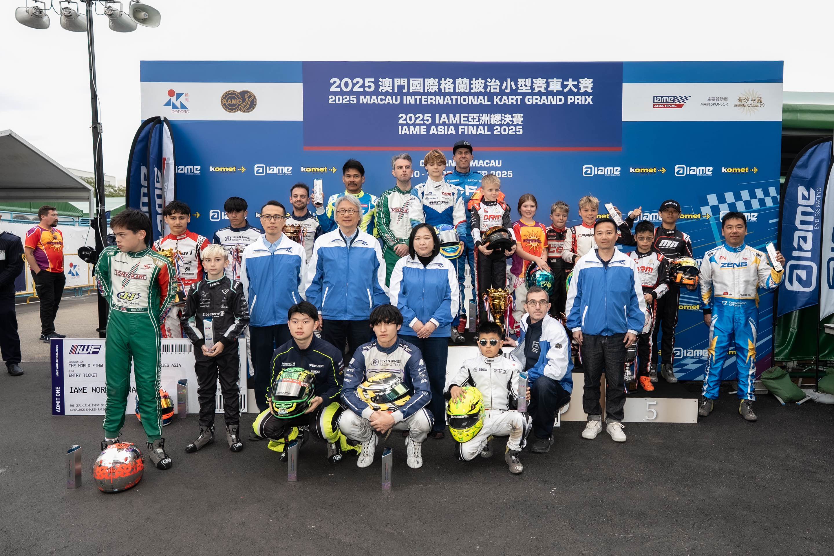 The 2025 Macau International Kart Grand Prix, organized by the Sports Bureau, the Automobile General Association of Macao-China, OTK Kart Asia and IAME Asia, and sponsored by Sands China Limited, concluded today (December 14) at the Coloane Karting Track, featuring races of the 2025 IAME Asia Final (Cadet, Junior, Senior, Master). The results of today’s finals are as follows: