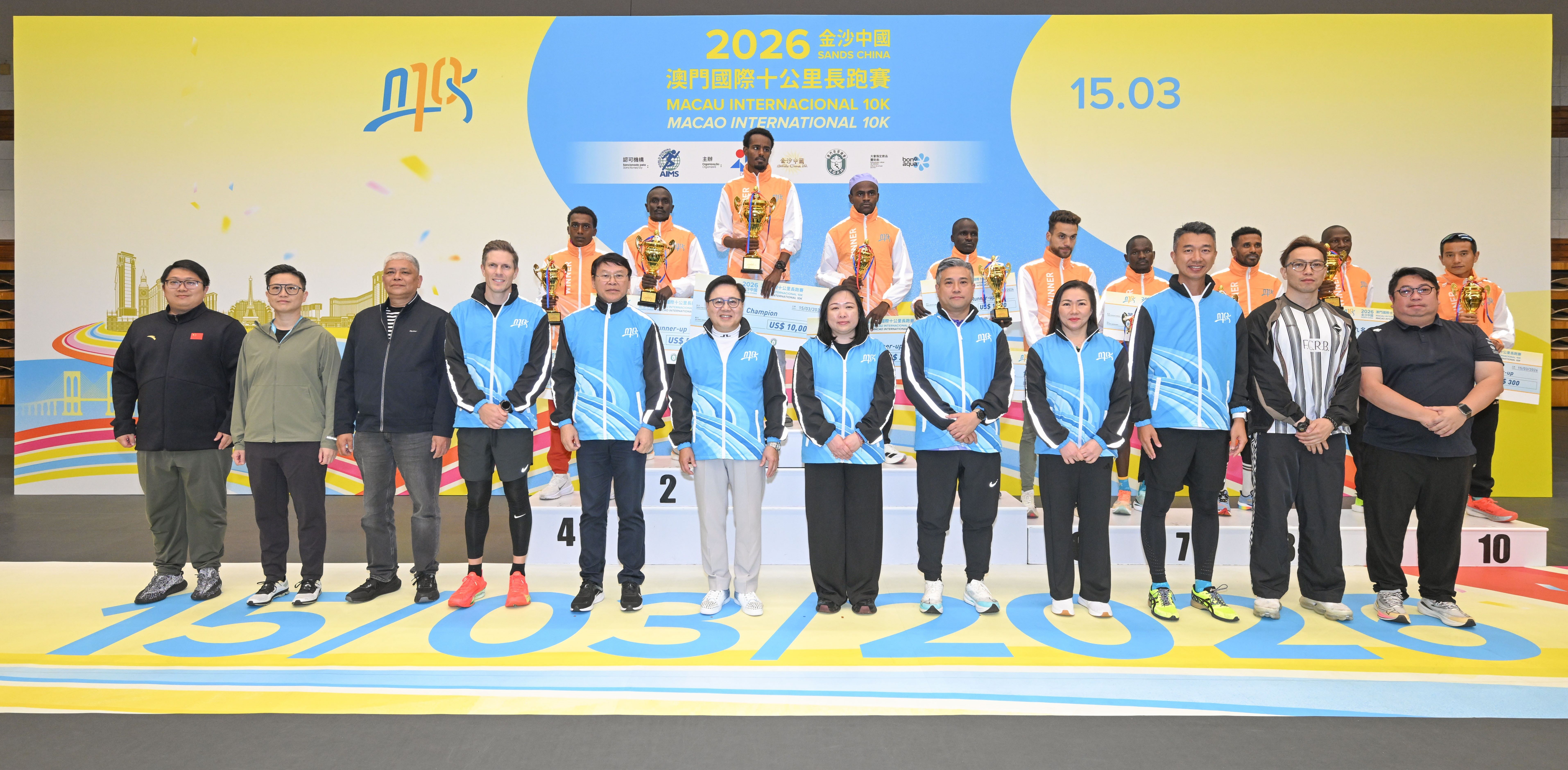 Realizou-se hoje, dia 15, “2026 Sands China Macau Internacional 10K”, com sucesso, que foi organizada em conjunto pelo Instituto do Desporto, Sands China Limited e a Associação Geral de Atletismo de Macau. A prova de 10Kcomeçou primeiro logo às 07:00 da manhã e a de Fun Run começou às 07:40. Finalmente, o etíope Aklilu Gebremariam Asfaw e a queniana Fridah Ndinda Mweu venceram, respectivamente, na categoria geral masculina e feminina dos 10K.