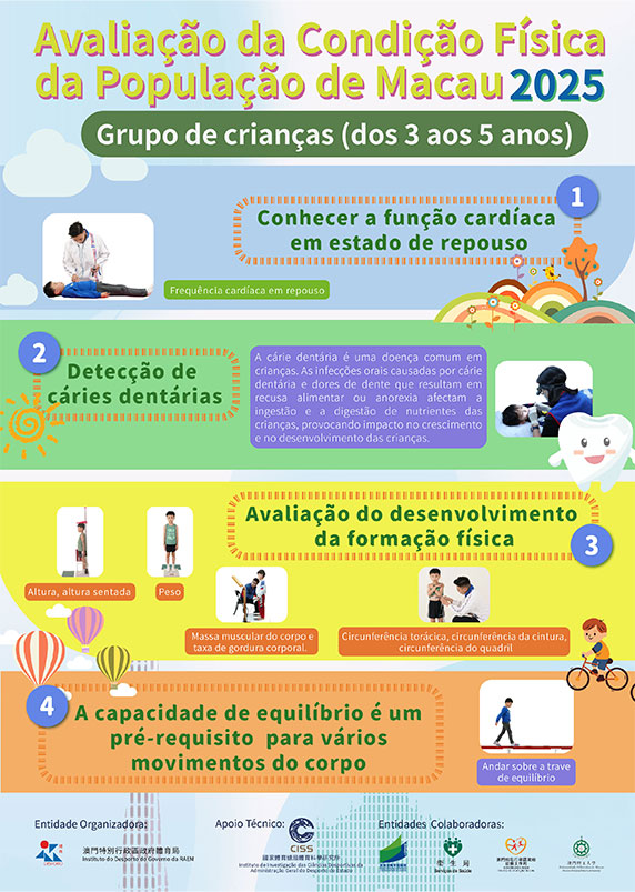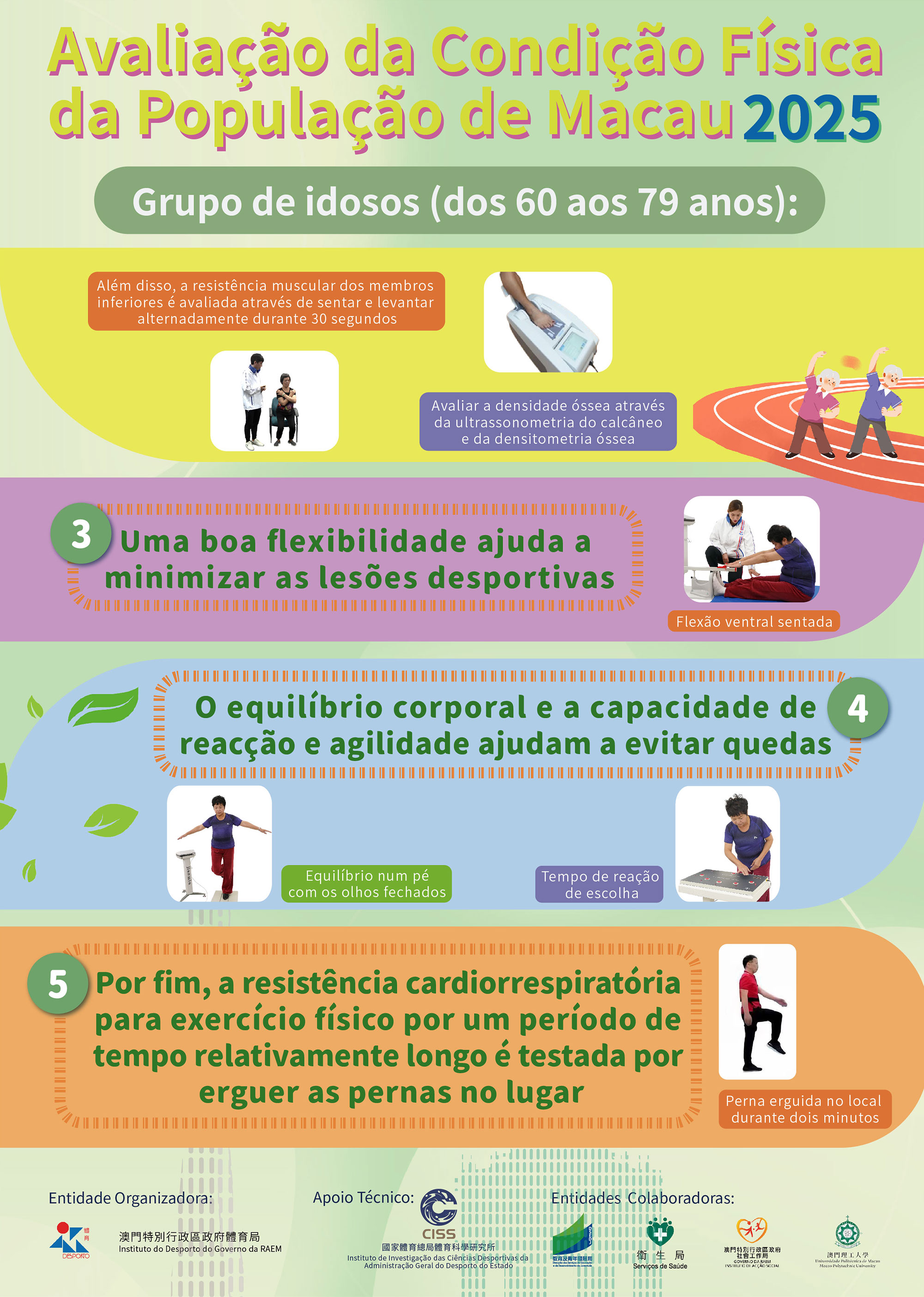 Para o conteúdo relacionado com a apresentação da Avaliação da Condição Física da População de Macau 2025, por favor consulte e a infografia.
