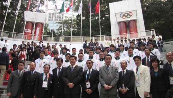 第五屆香港東亞運動會今日正式開幕,澳門特區體育代表團將於晚上八時乘坐巡遊綵船出席開幕典禮。代表團昨日出席了在香港公園奧林匹克廣場舉行了升旗儀式。體育發展局局長黃有力、副局長戴祖義、代副局長潘永權、中國澳門體育暨奧林匹克委員會主席盧景昭、體育代表團團長陳永傑及副團長郭寶泉、體育發展廳代廳長林蓮嬌等出席了儀式。