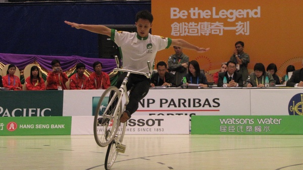 澳門特區體育代表團,昨日進行了多個項目比賽,其中在女子雙人花式單車賽,澳隊派出關淑梅、關淑賢及黃芷琪、蔡穎欣兩隊參加。關氏姊妹在決賽有穩定的表現,完成了多個難度動作,最終以62.61分的力壓港隊贏得金牌,其隊友黃芷琪、蔡穎欣則名列第四名;另外,在男子單人花式單車亦報捷,大師兄王衡鏘憑豐富的經驗,臨場發揮水準及完成多個高難度動作,最終以157.74的分數,擊敗香港兩名選手,為澳隊在今屆賽事摘下第二金,其隊友盧永仁則名列第五。