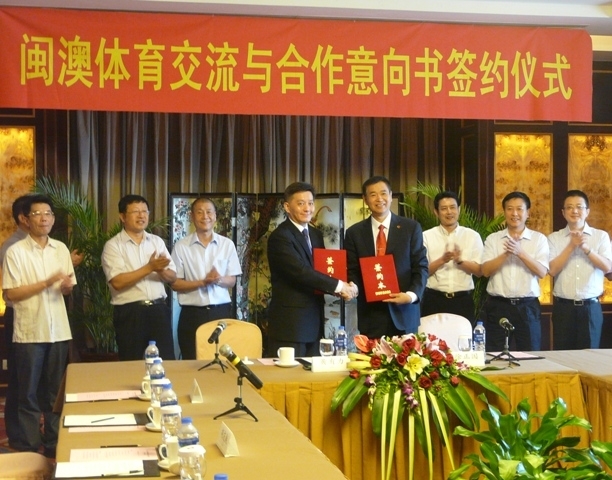 為進一步加強澳門特別行政區與福建省之間體育範疇的聯繫,擴大在體育領域的交流與合作,由澳門特區政府體育發展局與福建省體育局共同倡議簽署『閩澳體育交流與合作意向書』,由體育發展局局長黃有力及福建省體育局局長徐正國代表雙方,於昨日(20日)在福建省福州市進行了合作意向書的簽署儀式。