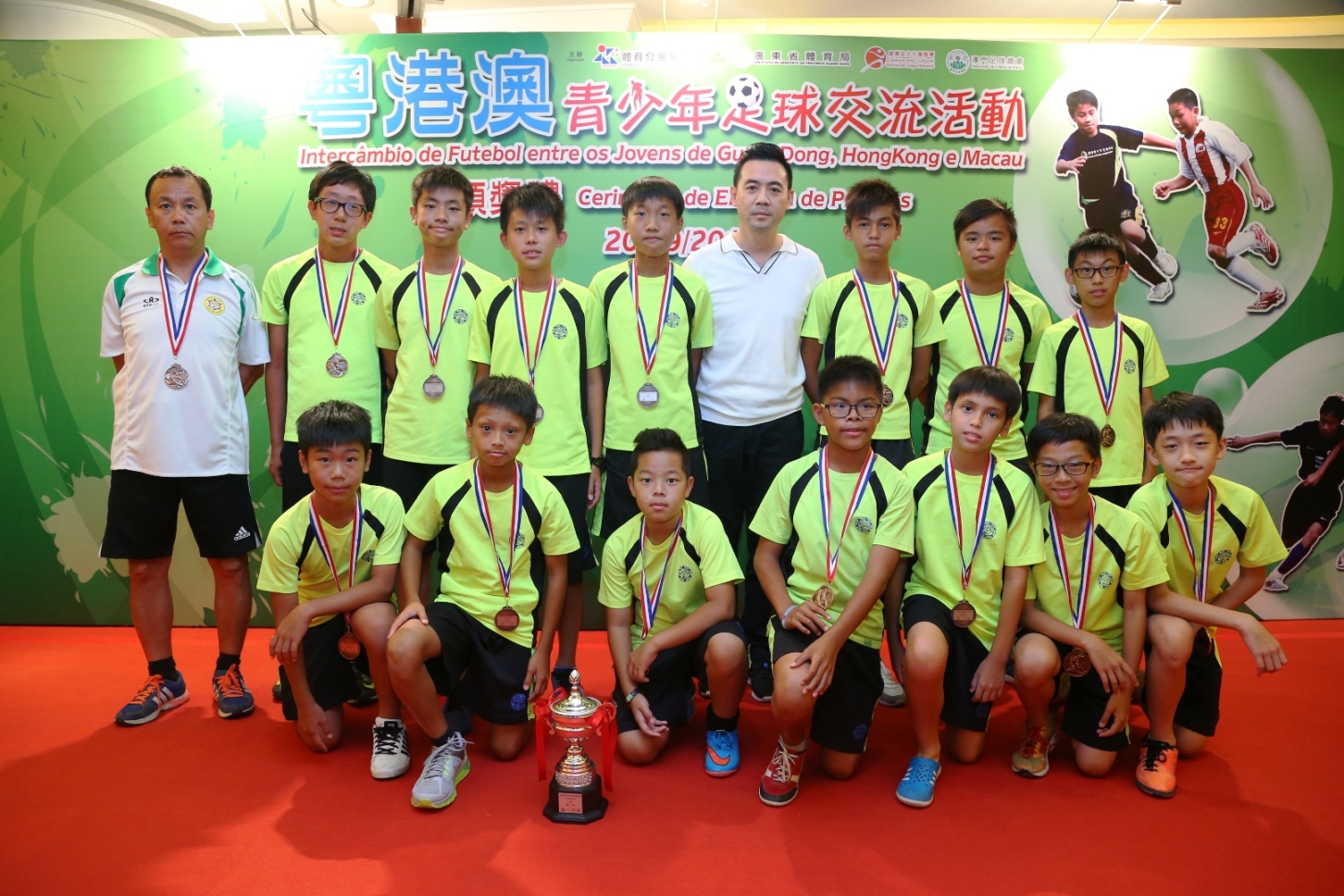 由澳門特別行政區政府體育發展局主辦,廣東省體育局、香港特別行政區政府康樂及文化事務署和澳門足球總會協辦的“粵港澳青少年足球交流活動”,一連兩日順利圓滿舉行。賽後主辦單位假君怡酒店舉行頒獎午宴。