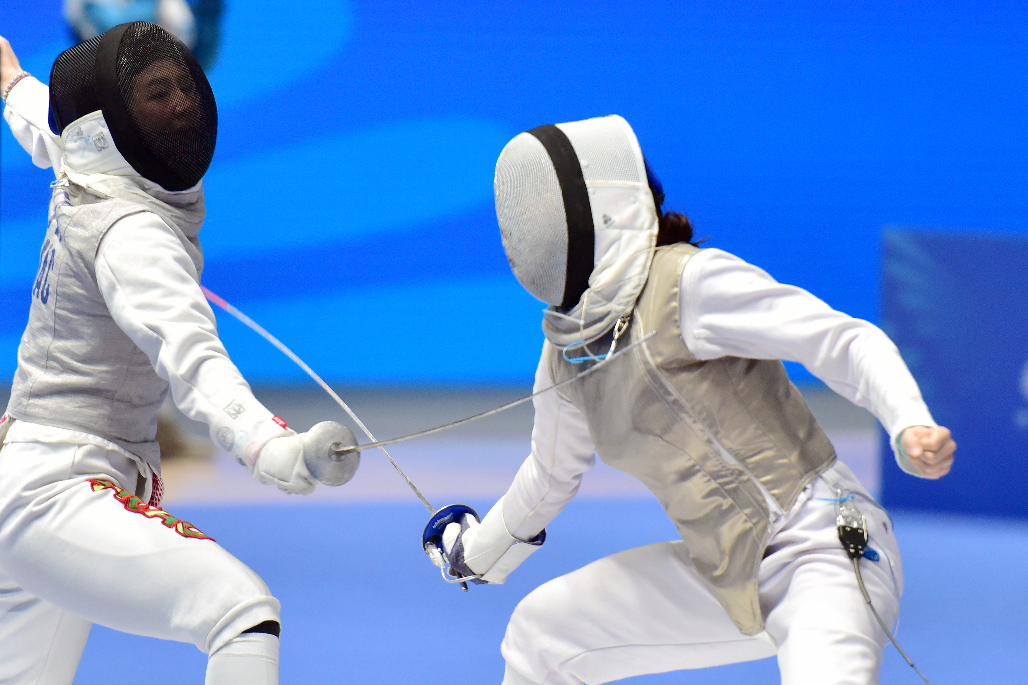 在香港賽區進行的劍擊賽事,女子花劍個人賽有顧曉琳(KU HIO LAM)成功闖過小組賽階段,取得3勝3負,先後擊敗香港選手、湖南及以個人名義參賽的選手,並以小組賽總排名第13位,取得晉級32強淘汰賽的資格,惜最後在首圈淘汰賽負重慶選手8比15,而止步於32強;另外兩名女子花劍選手,林芷薇(LAM CHI MEI)與易碧真(IEC PEK CHAN)經過小組賽階段後均未能晉級,總成績分別排第41位和第42位。此外,林承佑(LIN SENG IAO)出戰男子重劍,在小組賽錄得1勝5負,總成績排第36位,未能晉級。