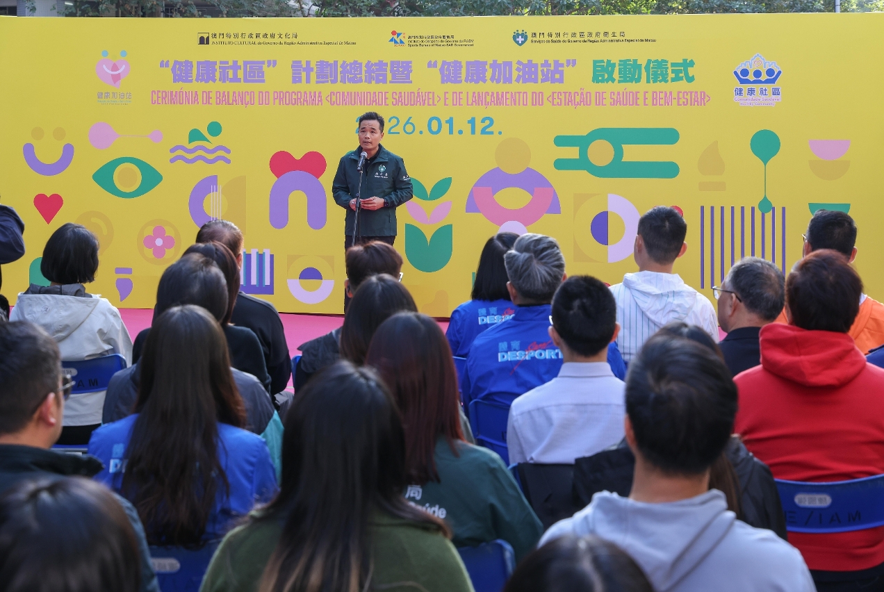 在儀式上,羅奕龍局長致辭時表示,特區政府貫徹國家健康優先發展戰略,以居民健康為中心,推動資源下沉。衛生局於去年積極落實《健康澳門藍圖》各項工作,提升居民整體健康水平;文化局開展藝文、閱讀系列活動;體育局開展大眾健康體育活動等,合力全方位滋養居民身心健康。在行政長官領導、中聯辦支持及社會文化司統籌協調下,“健康社區”計劃由去年3月啟動至今,依托跨部門協作,並與社團機構聯動,透過諮詢站、快閃站等開展了近200場活動,約有14萬人次的本澳居民參與。從而把健康促進工作有效落實到社區,獲居民正面反饋。今日啟動的“健康加油站”是“健康社區”計劃的進一步延伸,由文化局、體育局、衛生局聯合開展,是首個整合“文化滋養、科學運動、健康資訊”等三大元素於同一社區場景。首階段將開設8個站點,未來擴展至12個站點,在社區恆常化為居民提供便捷的健康促進服務,實現健康資源“隨手可得、隨心即享”,攜手實現“活力澳門、文化澳門、幸福澳門”施政願景。