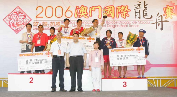 2006年澳門國際龍舟賽經過三天的比賽,圓滿結束,各項賽事桂冠名花有主,國際賽男女子組共四十八支隊伍經過多番比拼後,男子總決賽冠軍是來自內地、成功\衛冕之勁旅中國南海遠航九江龍舟隊,以1分53秒20的成績,力壓一眾猛龍外隊及本地薑,連續四年奪冠;女子組方面,亦由來自內地之中國順德龍舟隊以大熱姿態勝出。