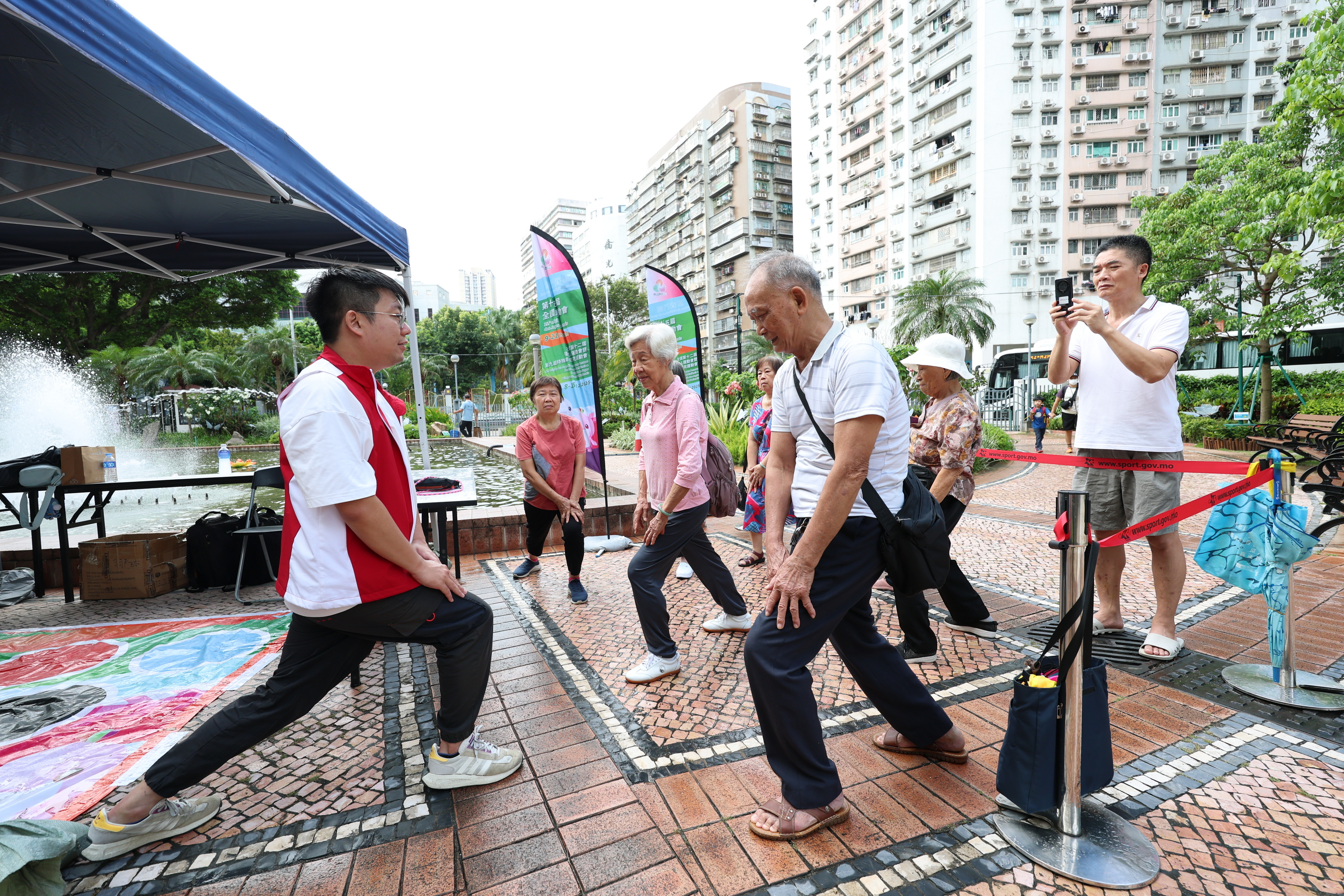 活動以「運動減壓、運動營養」為主題,連續兩週在全澳各社區展開,現場不僅設置專題攤位遊戲,更提供多項趣味運動體驗,包括羽毛球、乒乓球、足球、籃球、排球與跳繩等,吸引不同年齡層居民積極參與,場面熱鬧。
