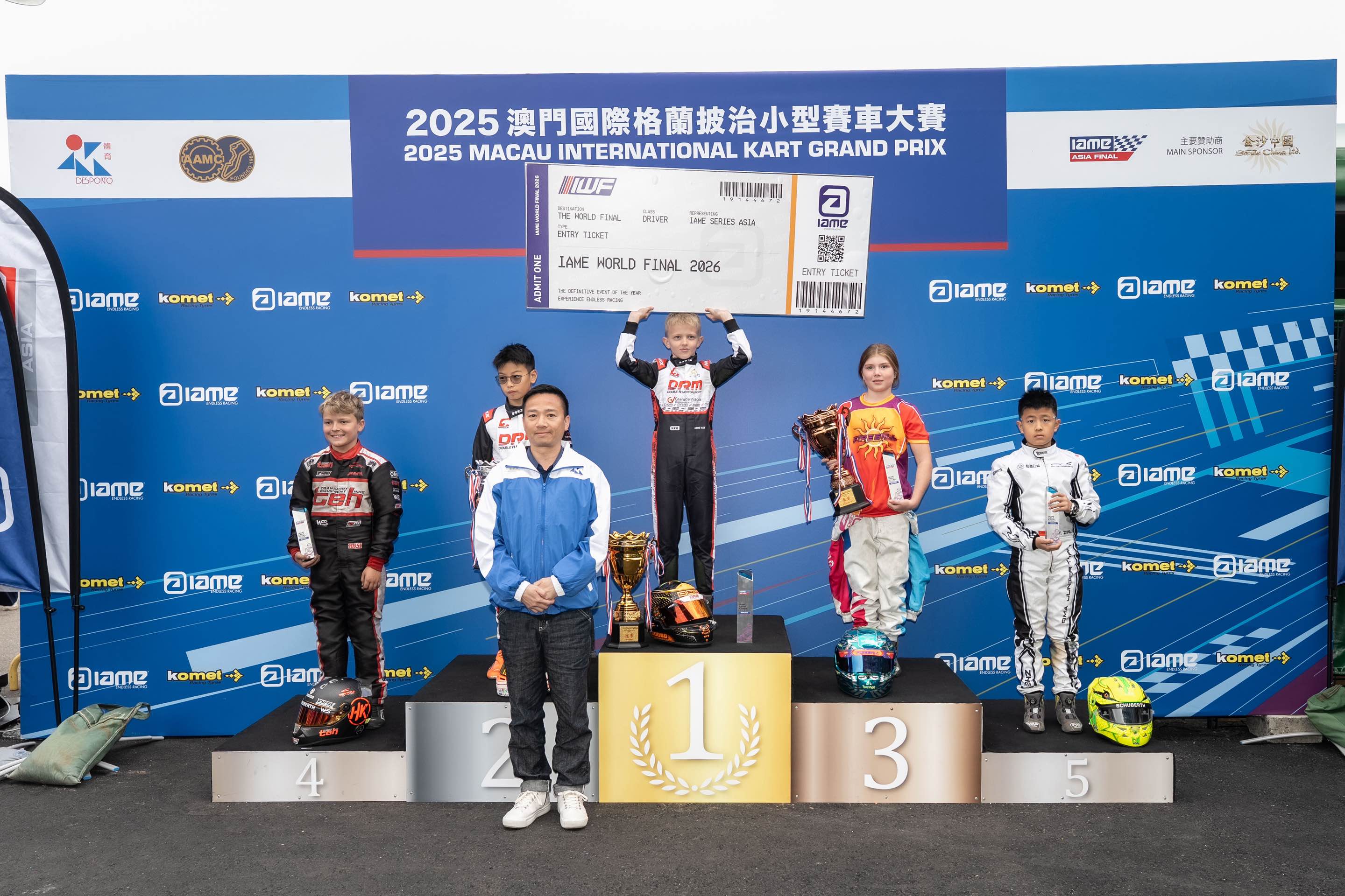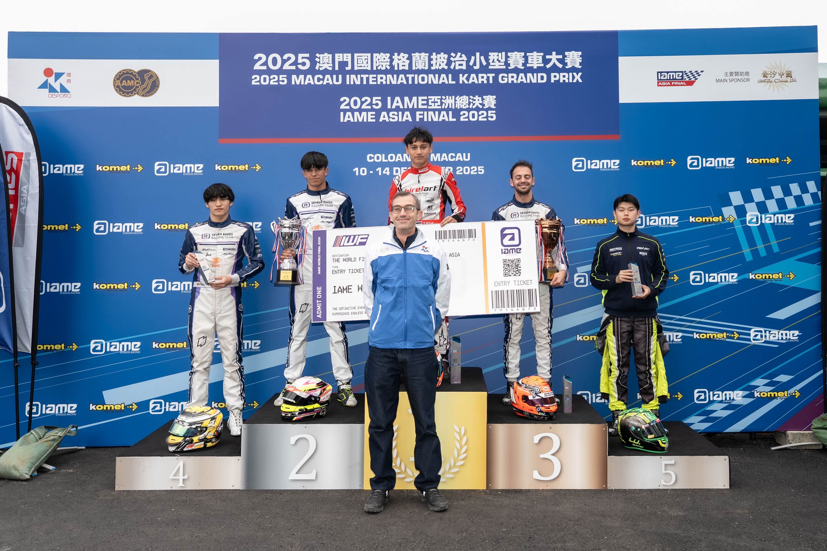The 2025 Macau International Kart Grand Prix, organized by the Sports Bureau, the Automobile General Association of Macao-China, OTK Kart Asia and IAME Asia, and sponsored by Sands China Limited, concluded today (December 14) at the Coloane Karting Track, featuring races of the 2025 IAME Asia Final (Cadet, Junior, Senior, Master). The results of today’s finals are as follows: