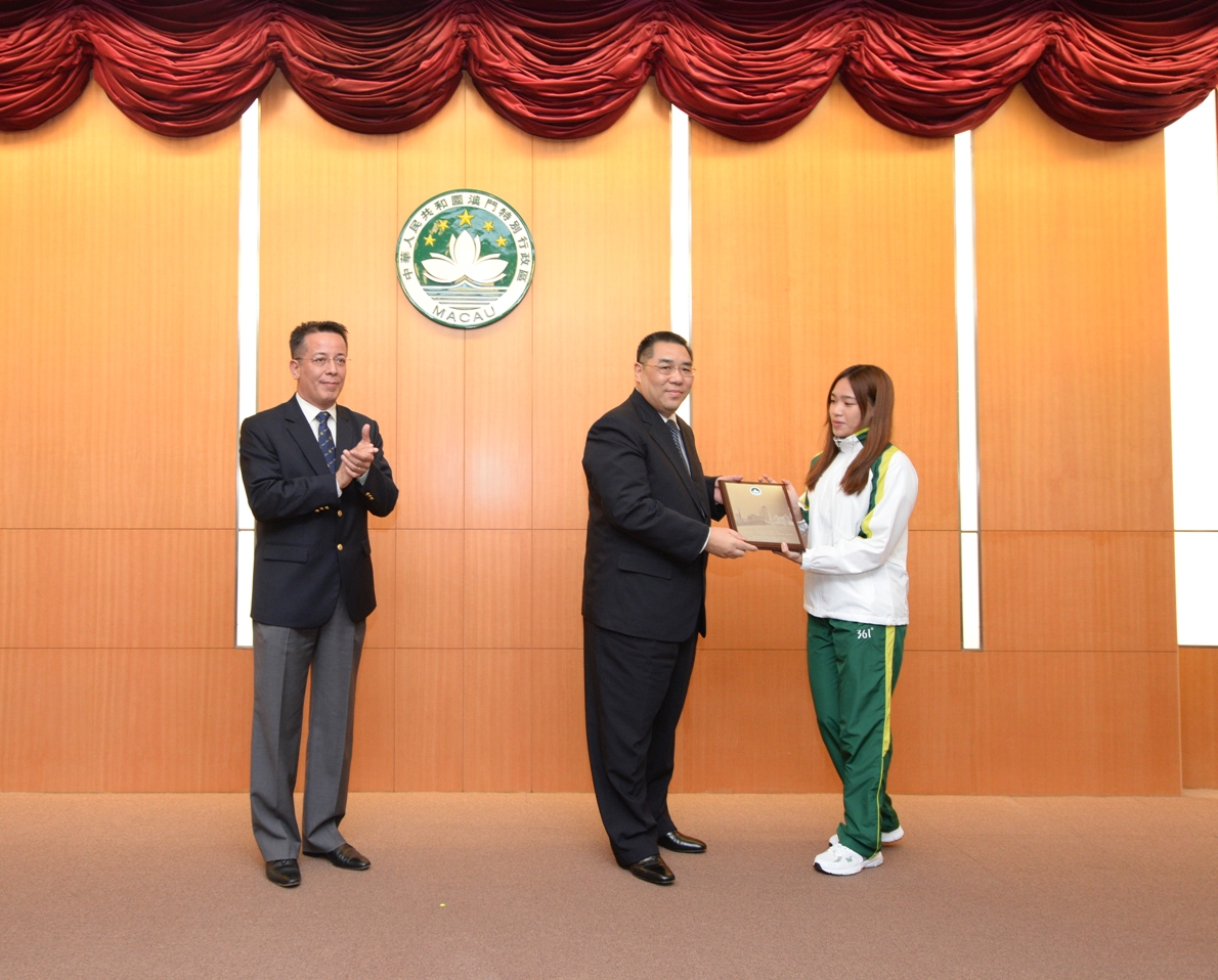Os convidados presentes na cerimónia foram respectivamente, o Presidente Substituto do Instituto para os Assuntos Cívicos e Municipais, o Presidente da Direcção do Comité Olímpico e Desportivo de Macau, China, o Secretário-geral Chan Chak Mou, membros do Conselho do Desporto, e outros convidados.