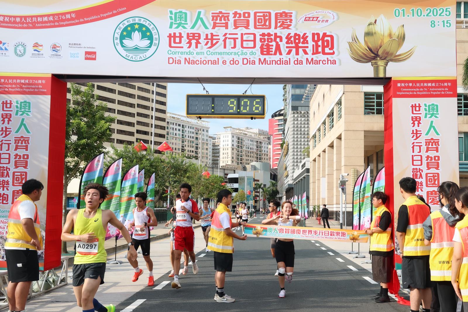 Em comemoração do “76.º Aniversário da Fundação da República Popular da China, a actividade de corrida intitulada “Correndo em Comemoração do Dia Nacional e do Dia Mundial da Marcha 2025”, organizada pelo Instituto do Desporto, teve lugar hoje (dia 1) às 08H15 na Praça de Lótus Dourado. A corrida começou logo depois da cerimónia da partida presidida pelo Chefe do Executivo da Região Administrativa Especial de Macau, Sam Hou Fai.