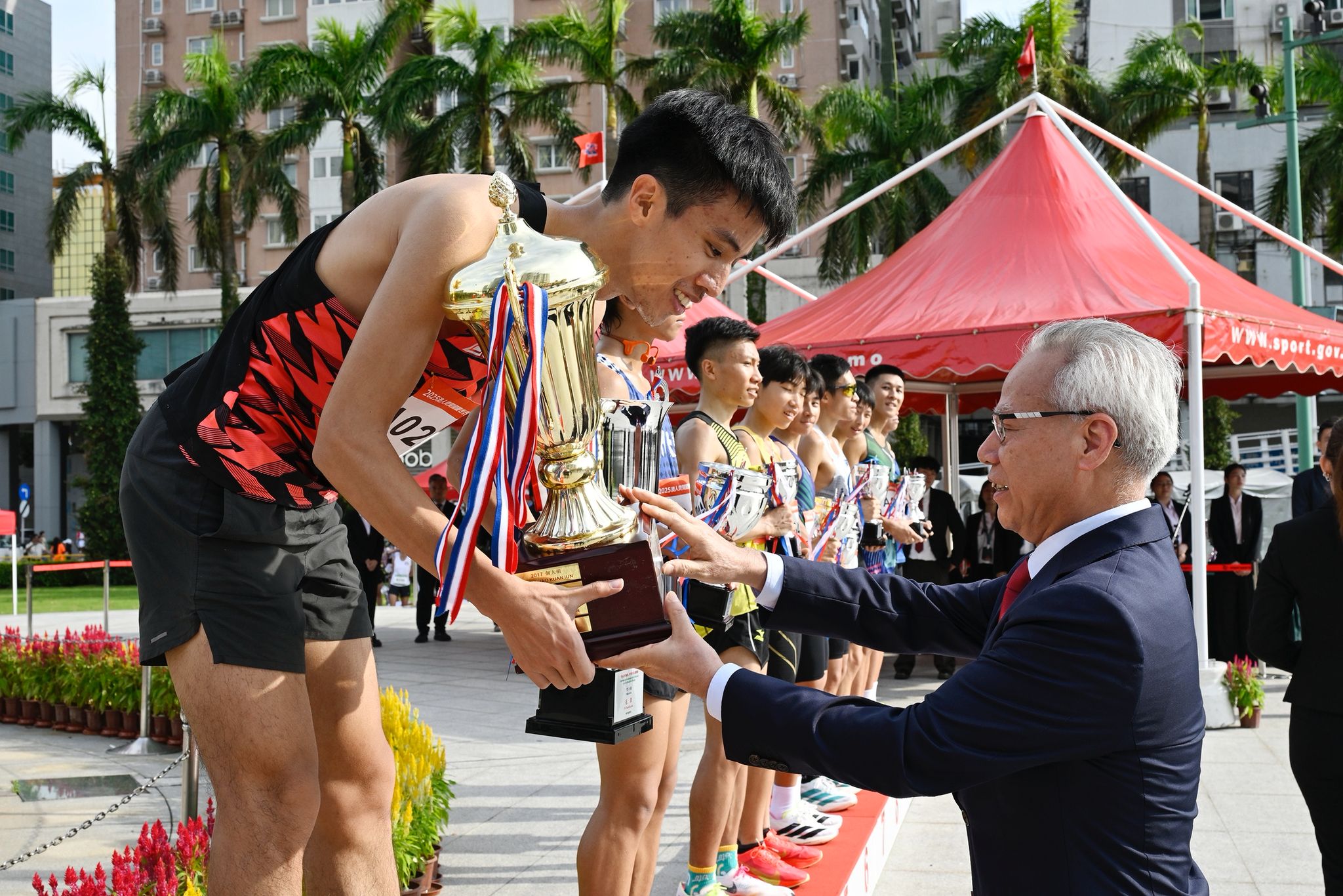 A cerimónia de entrega de prémios realizou-se imediatamente após a chegada à meta dos corredores, tendo como convidados o Chefe do Executivo da RAEM, Sam Hou Fai, o Director do Gabinete de Ligação do Governo Popular Central na RAEM, Zheng Xincong, o Comissário do Ministério dos Negócios Estrangeiros na RAEM, Liu Xianfa, o Comandante da Guarnição em Macau do Exército de Libertação do Povo Chinês, Lin Qinghua, o Presidente da Assembleia Legislativa, Kou Hoi In e a Presidente do Tribunal de Última Instância, Song Man Lei.