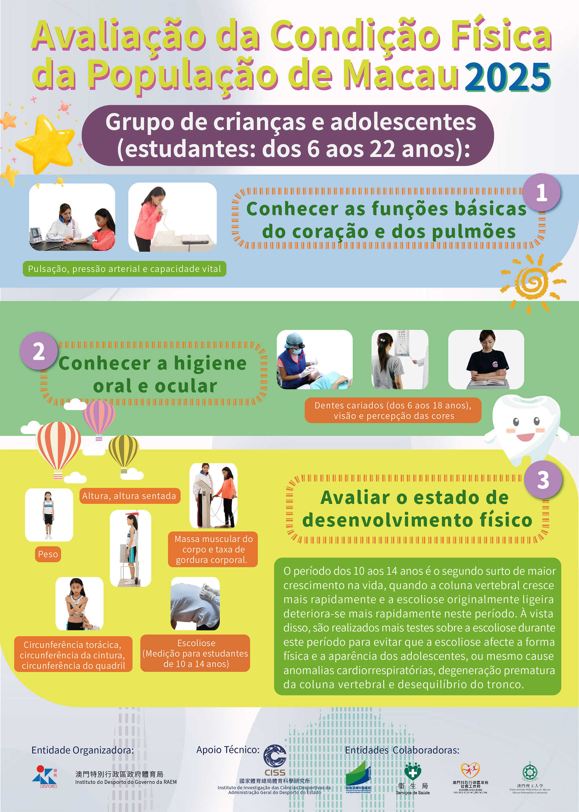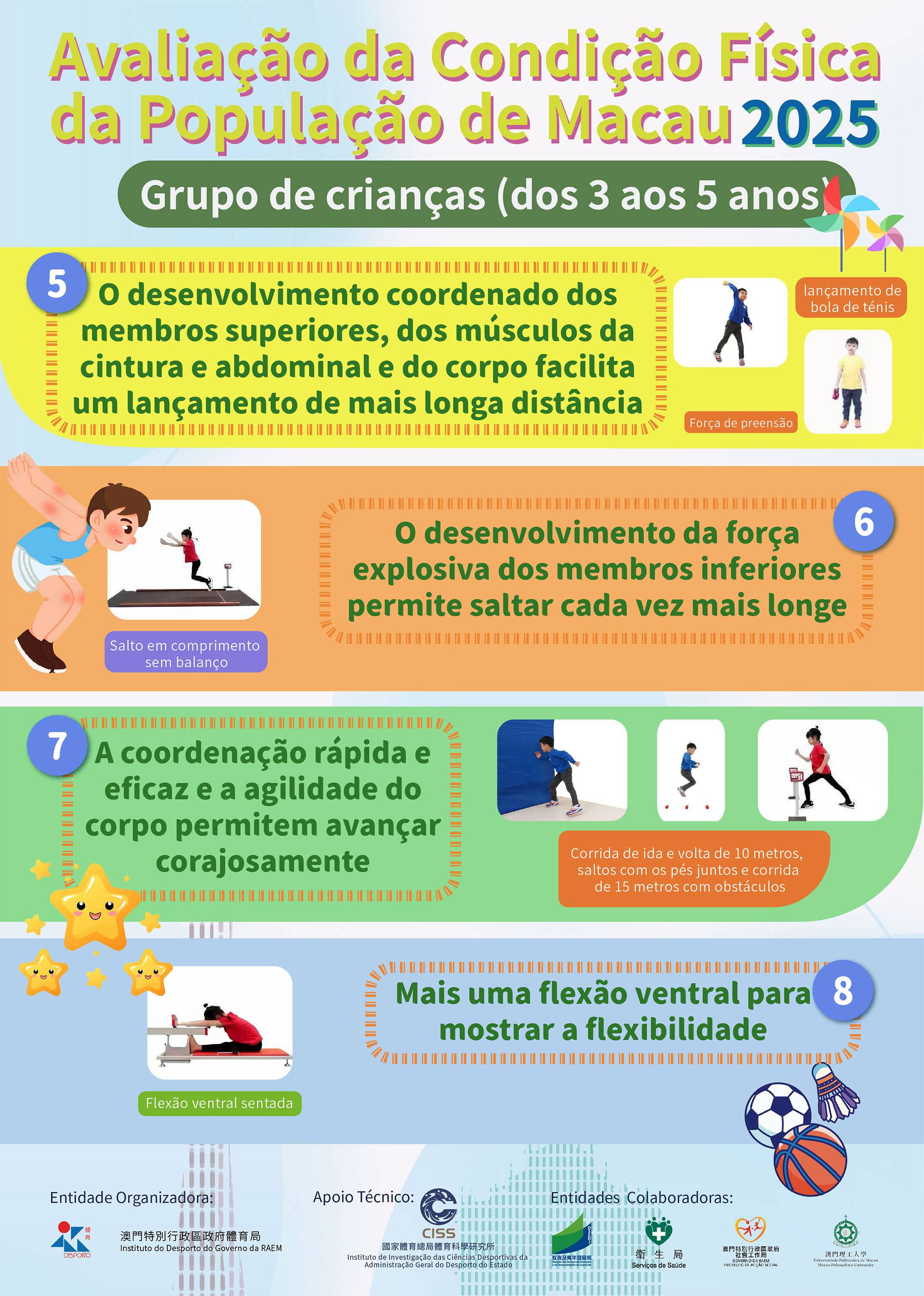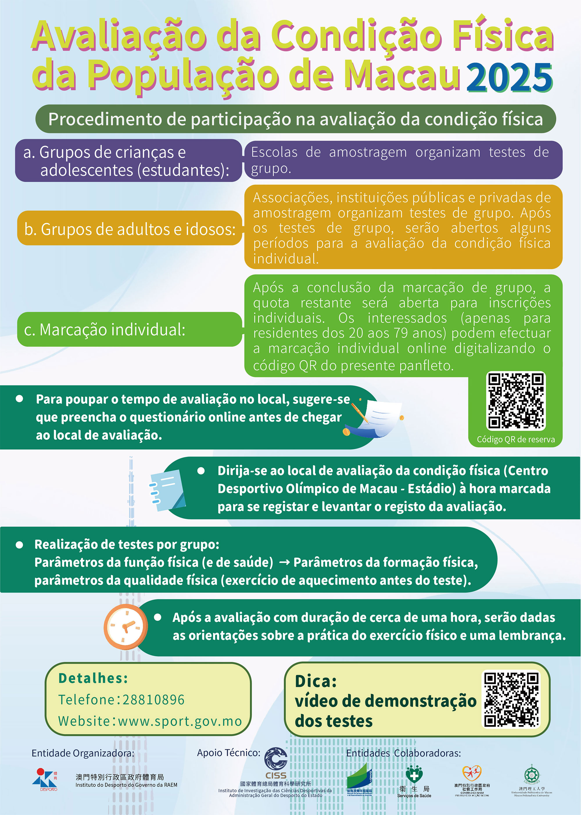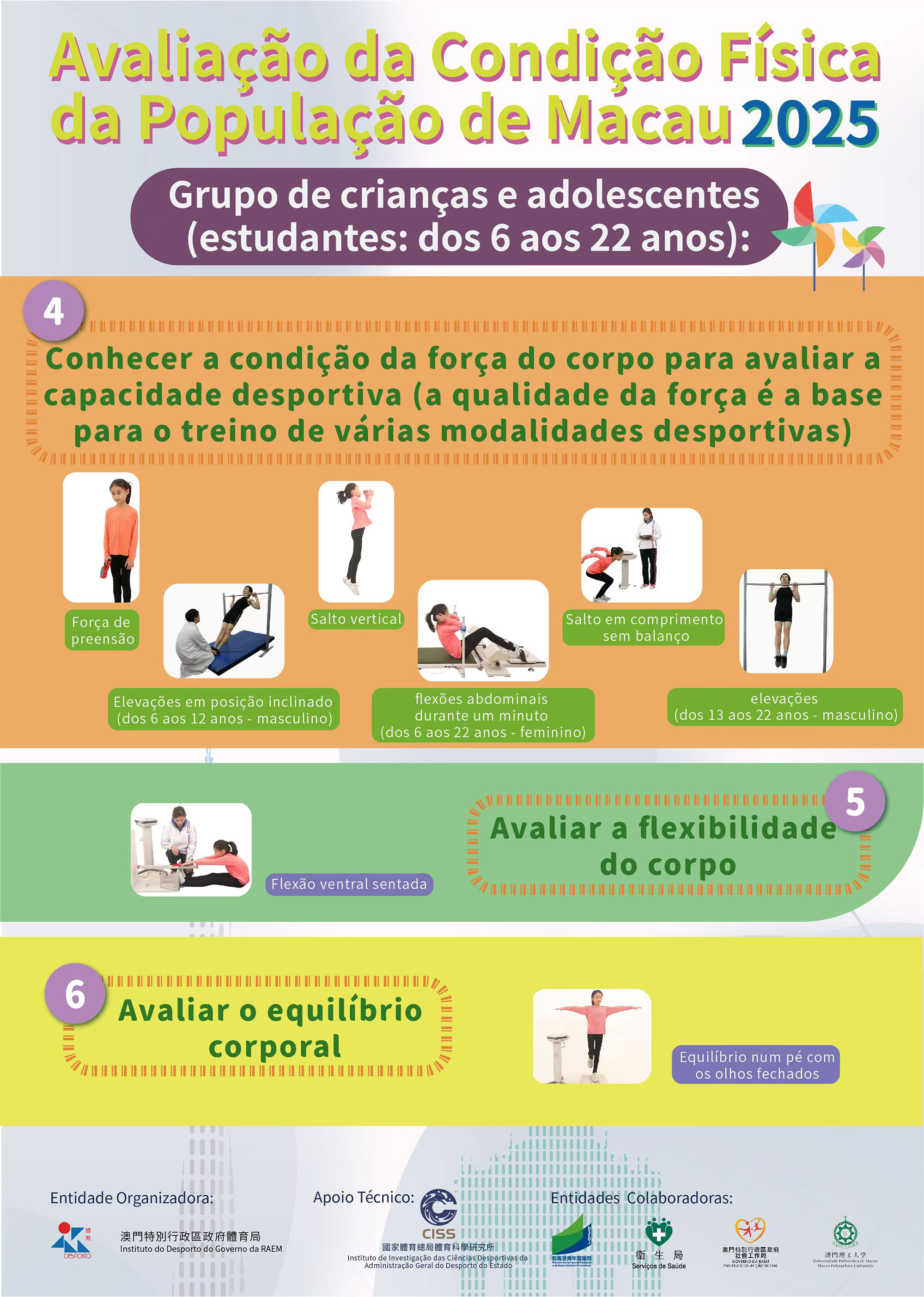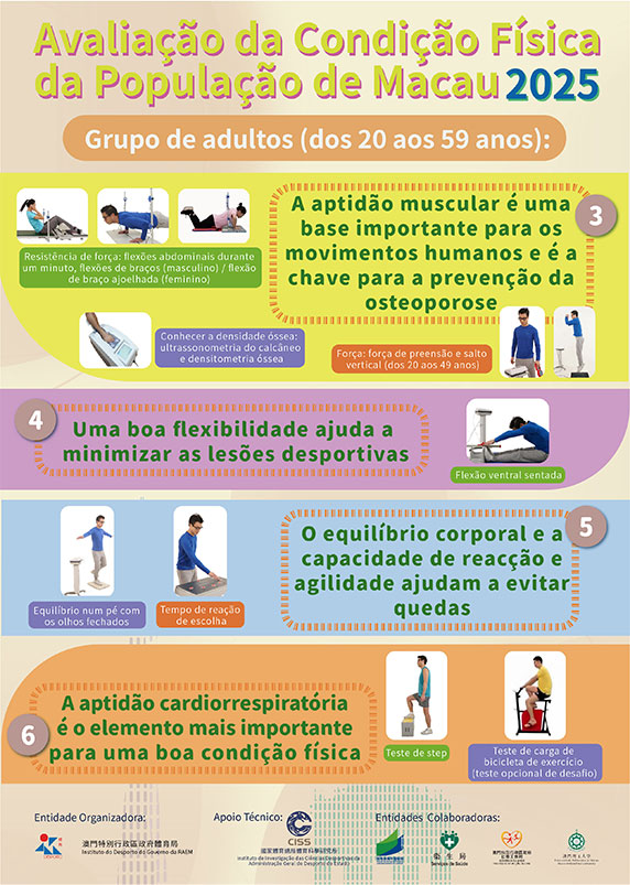 Para o conteúdo relacionado com a apresentação da Avaliação da Condição Física da População de Macau 2025, por favor consulte e a infografia.