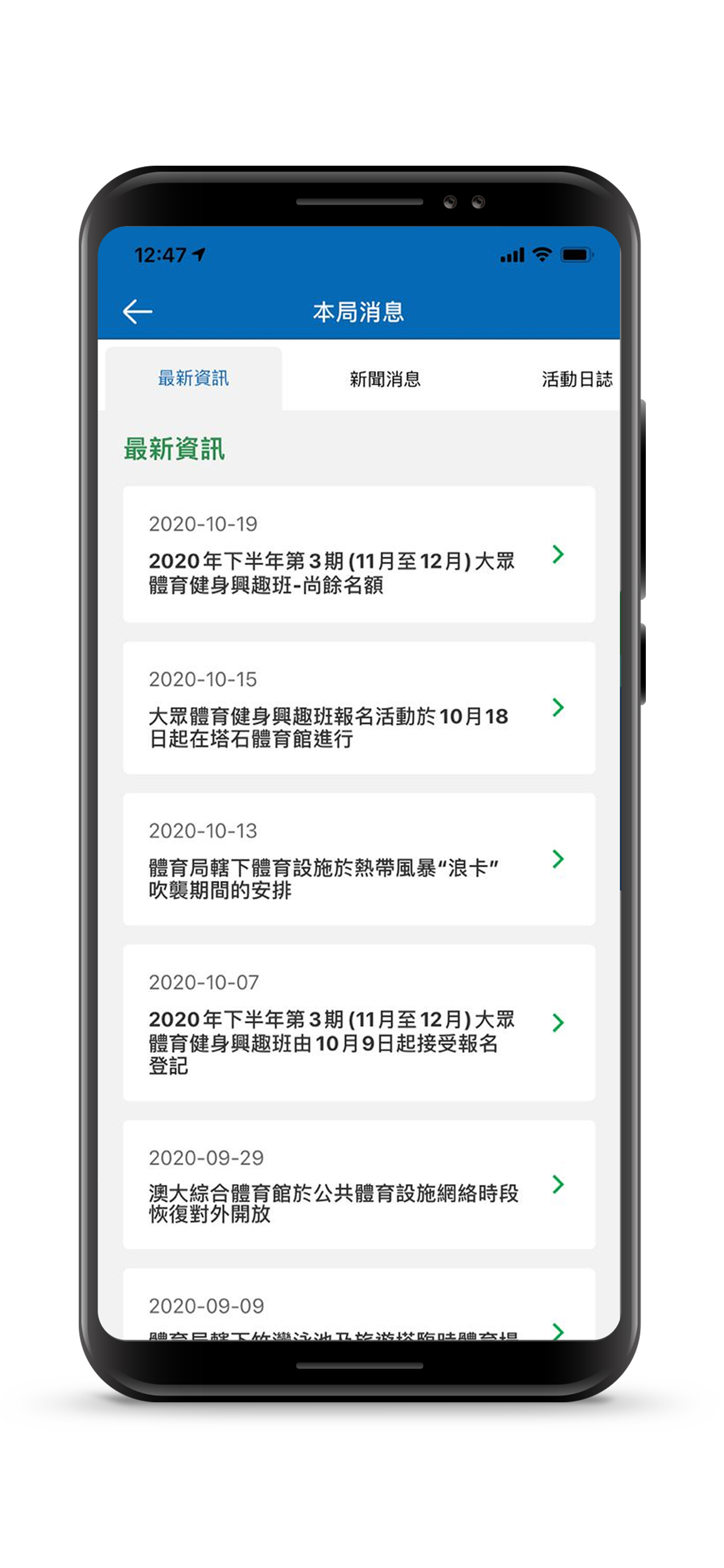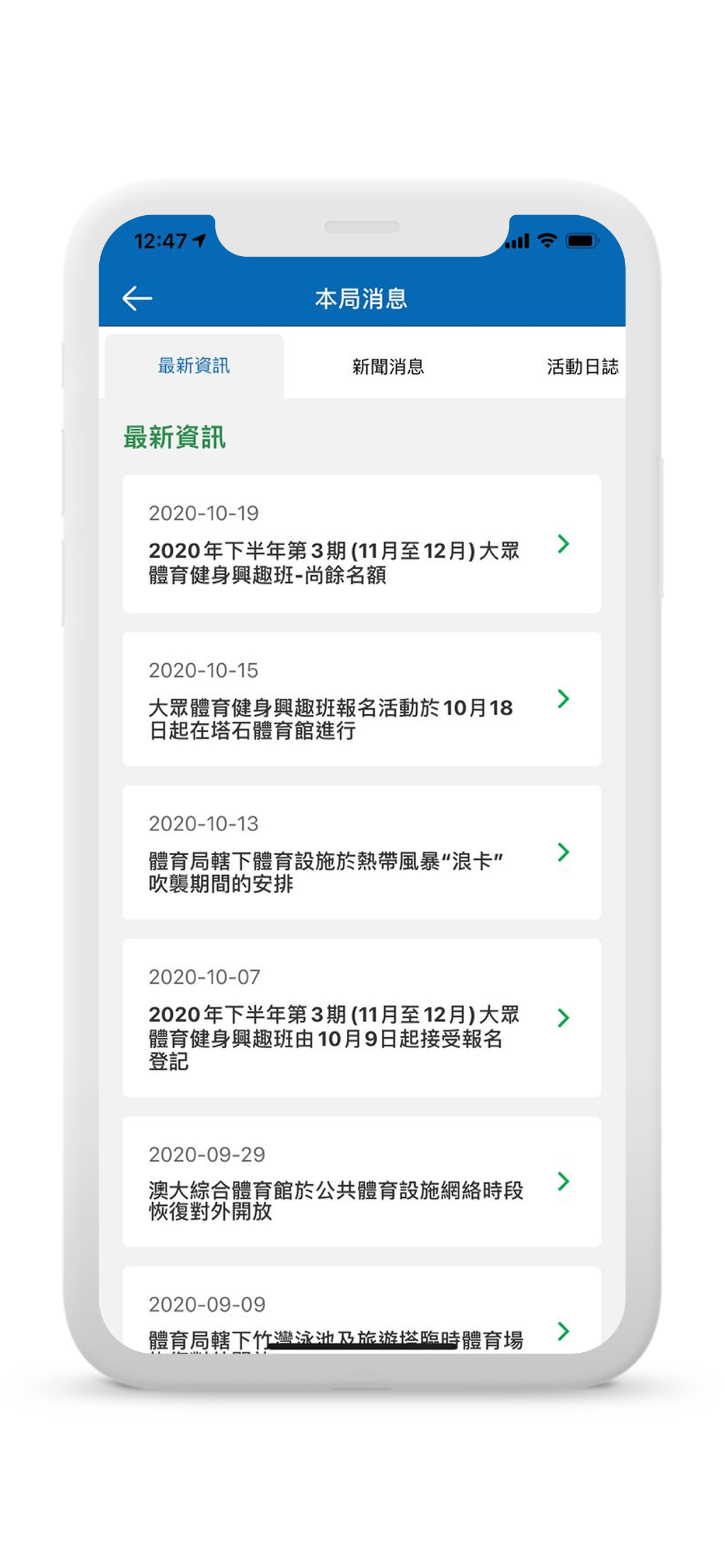 為使公眾便捷地取得最新體育資訊,體育局推出手機應用程式作為網頁之輔助性工具。有利於電子服務平台更全面、更趨多元化。