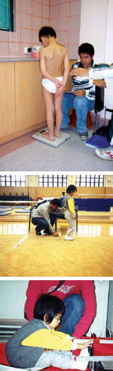 身體素質:立定跳遠、網球擲遠、坐位體前屈、10米折返跑、走平衡木、雙腳連續跳。