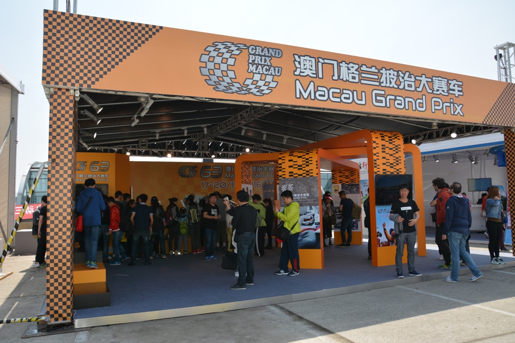 體育局是次應F1中國大獎賽上海站賽會邀請參與活動,並在場內設展位宣傳澳門格蘭披治大賽車。今次展位以大賽車的黃色及黑色為主色調,動感的設計加上賽車相片,整個展位以鮮明的色彩呈現,同時,展板亦介紹了第63屆澳門格蘭披治大賽車各大賽事、歷屆賽車英雄及澳門大賽車的歷史。體育局期望藉著到F1中國大獎賽上海站宣傳的機會,加深上海市民和全球各地的賽車迷對澳門格蘭披治大賽車的認識,吸引更多人來澳參與和觀賞賽事,同時促進兩地交流,達至共同推廣賽車運動的目標。