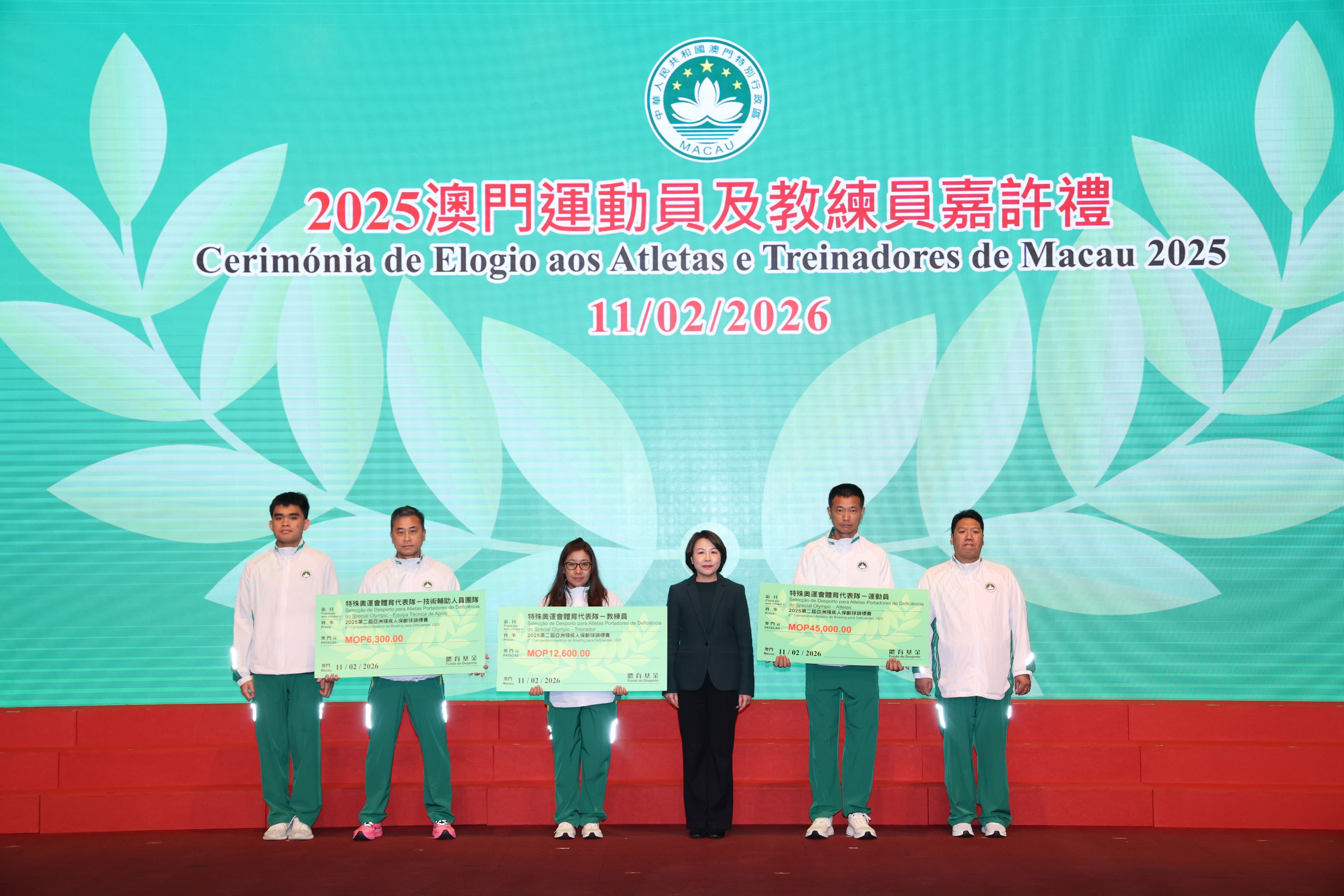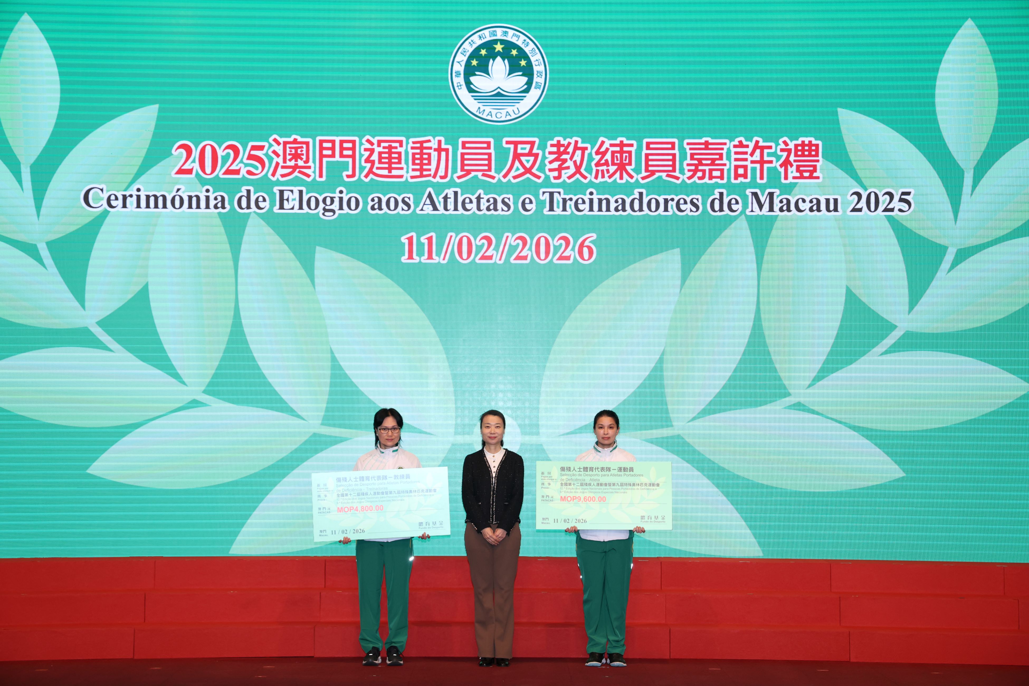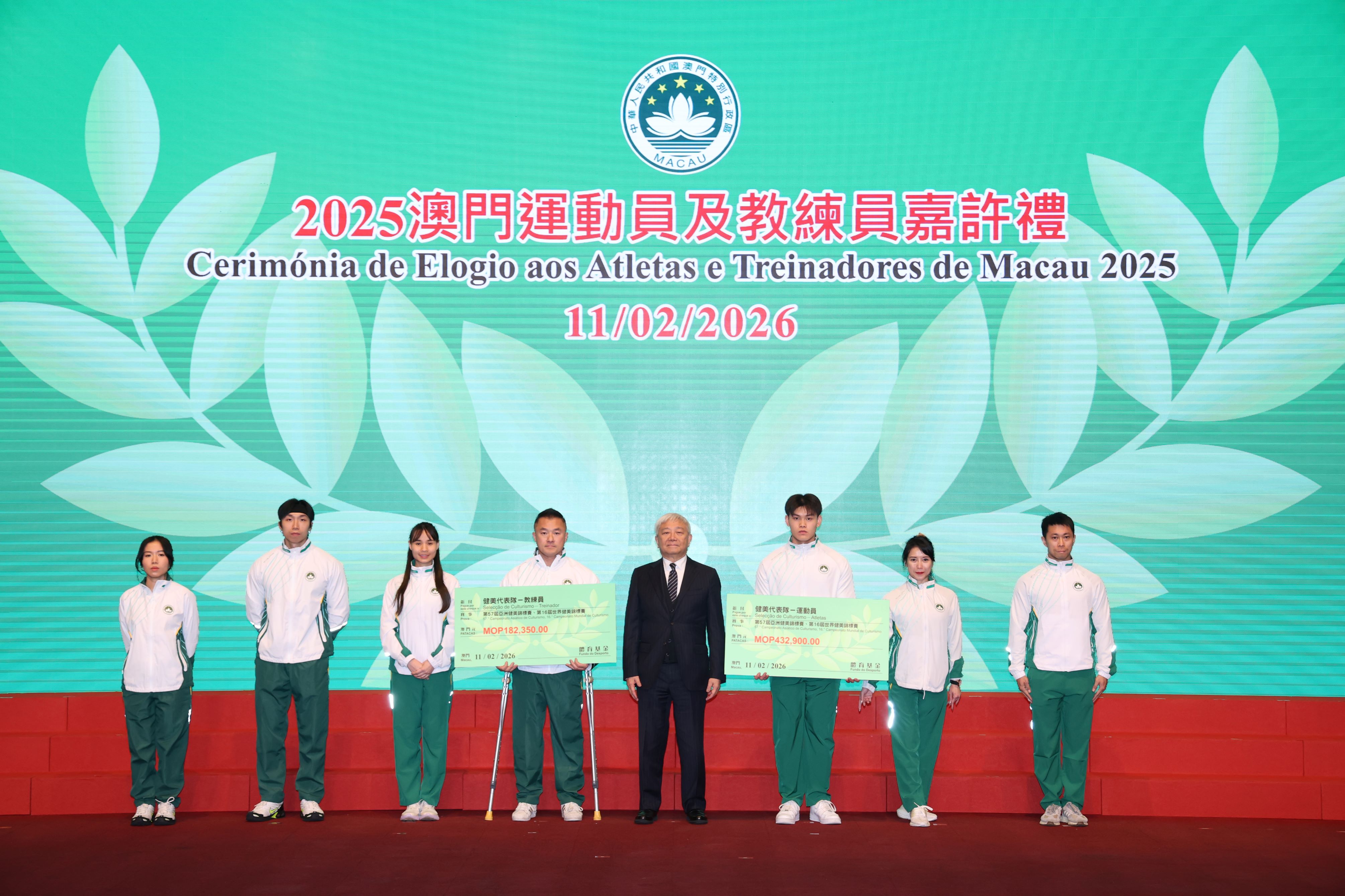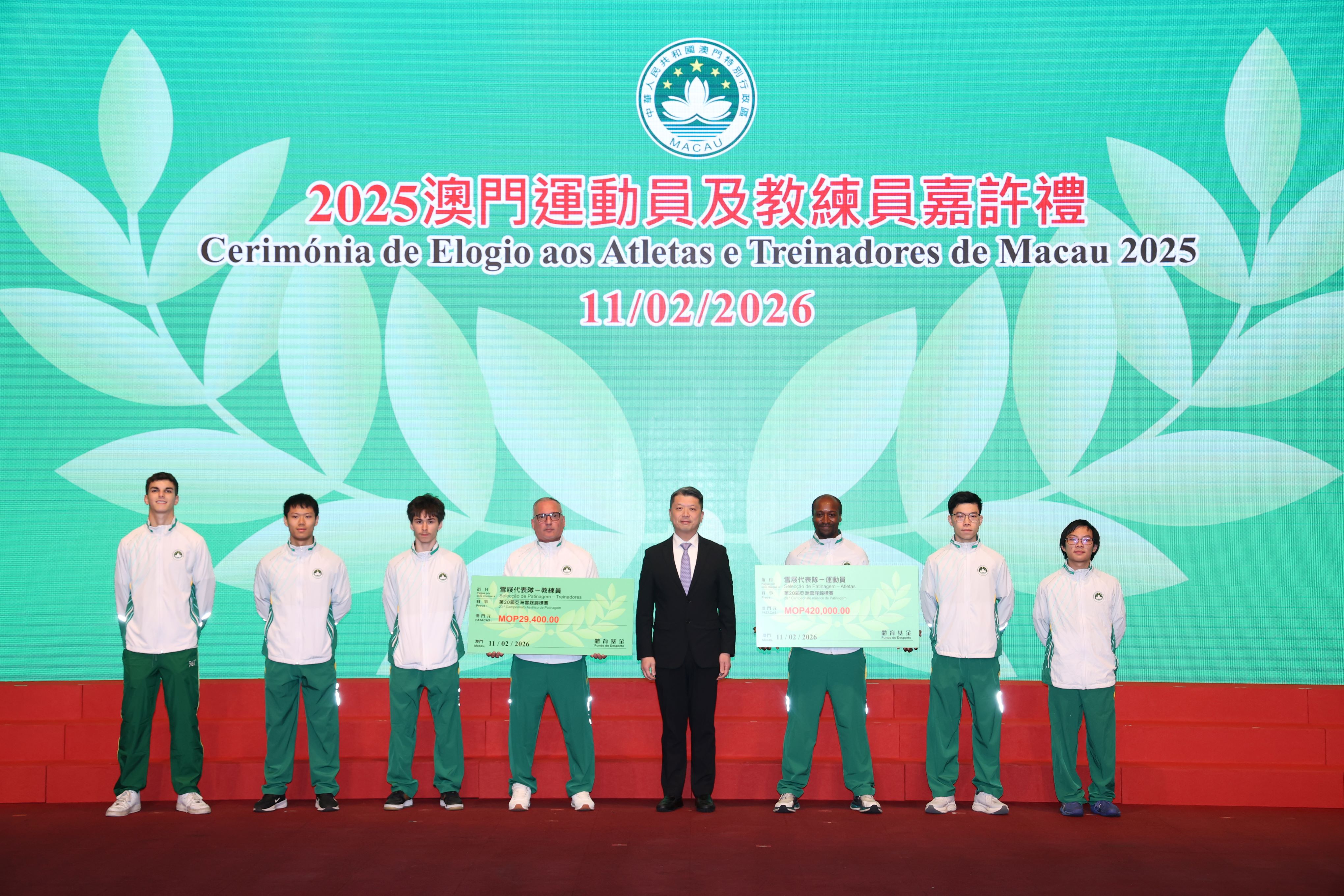 為表彰在2025年度參加體育比賽中獲得優秀成績的本澳運動員、教練員及技術輔助人員,以及為鼓勵澳門體育代表團在今年各項大型體育賽事中創造佳績,「2025澳門運動員及教練員嘉許禮暨2026體育代表團誓師儀式」今(11)日晚上七時半舉行,社會文化司司長柯嵐等出席儀式,勉勵並祝賀一眾運動健兒。