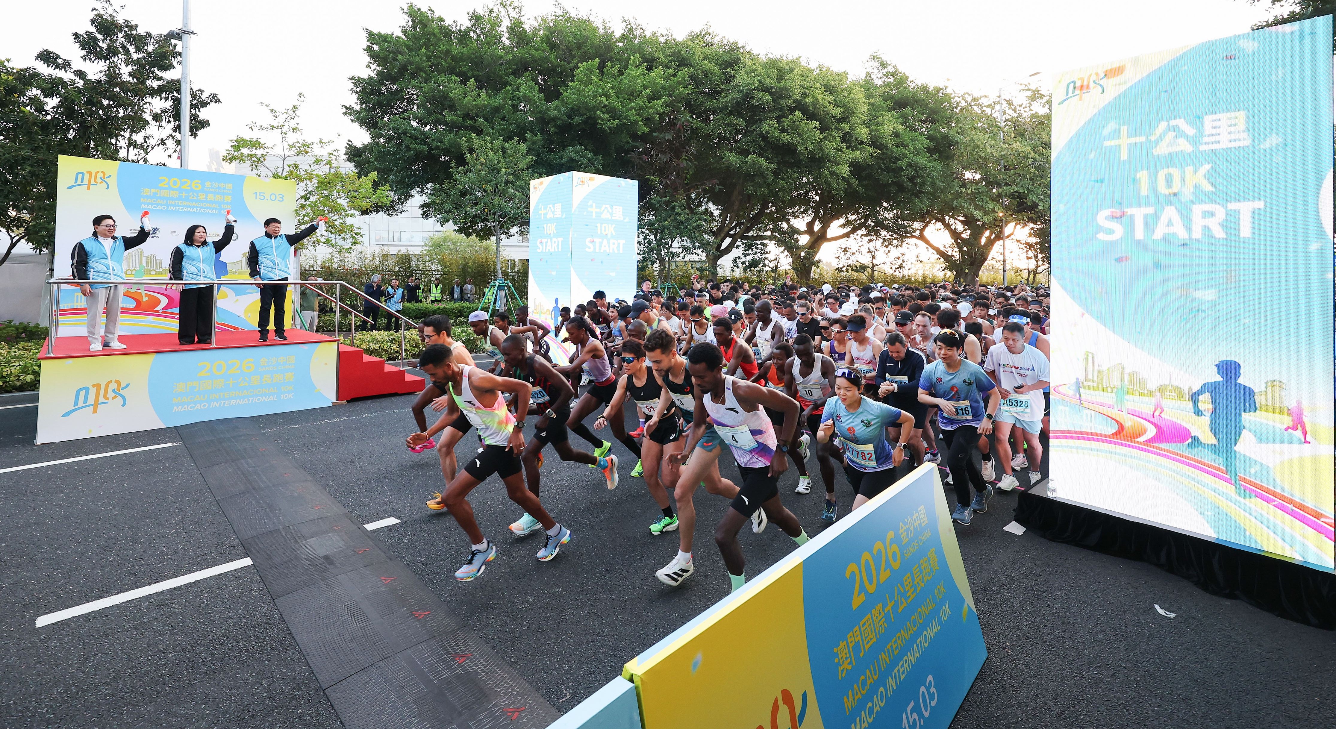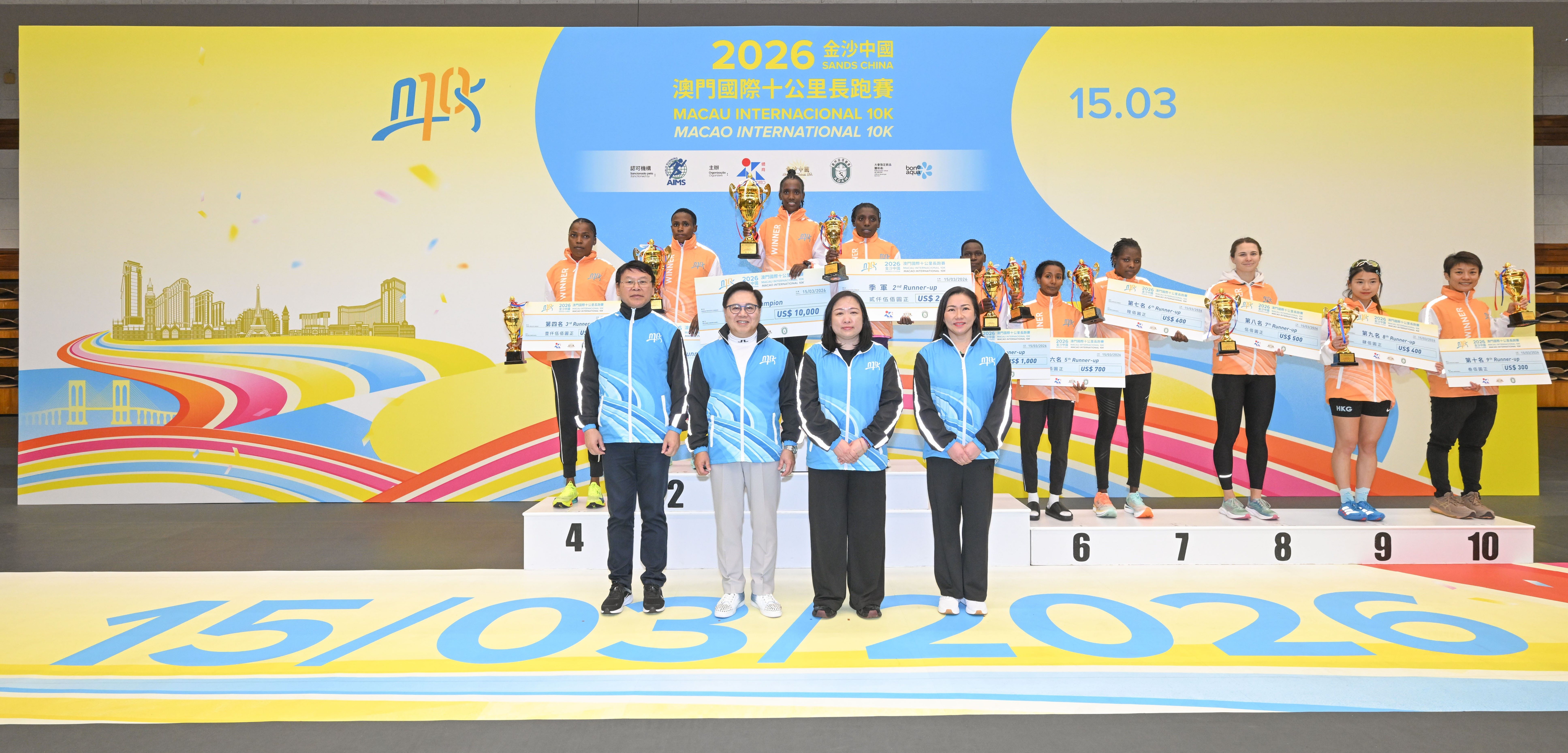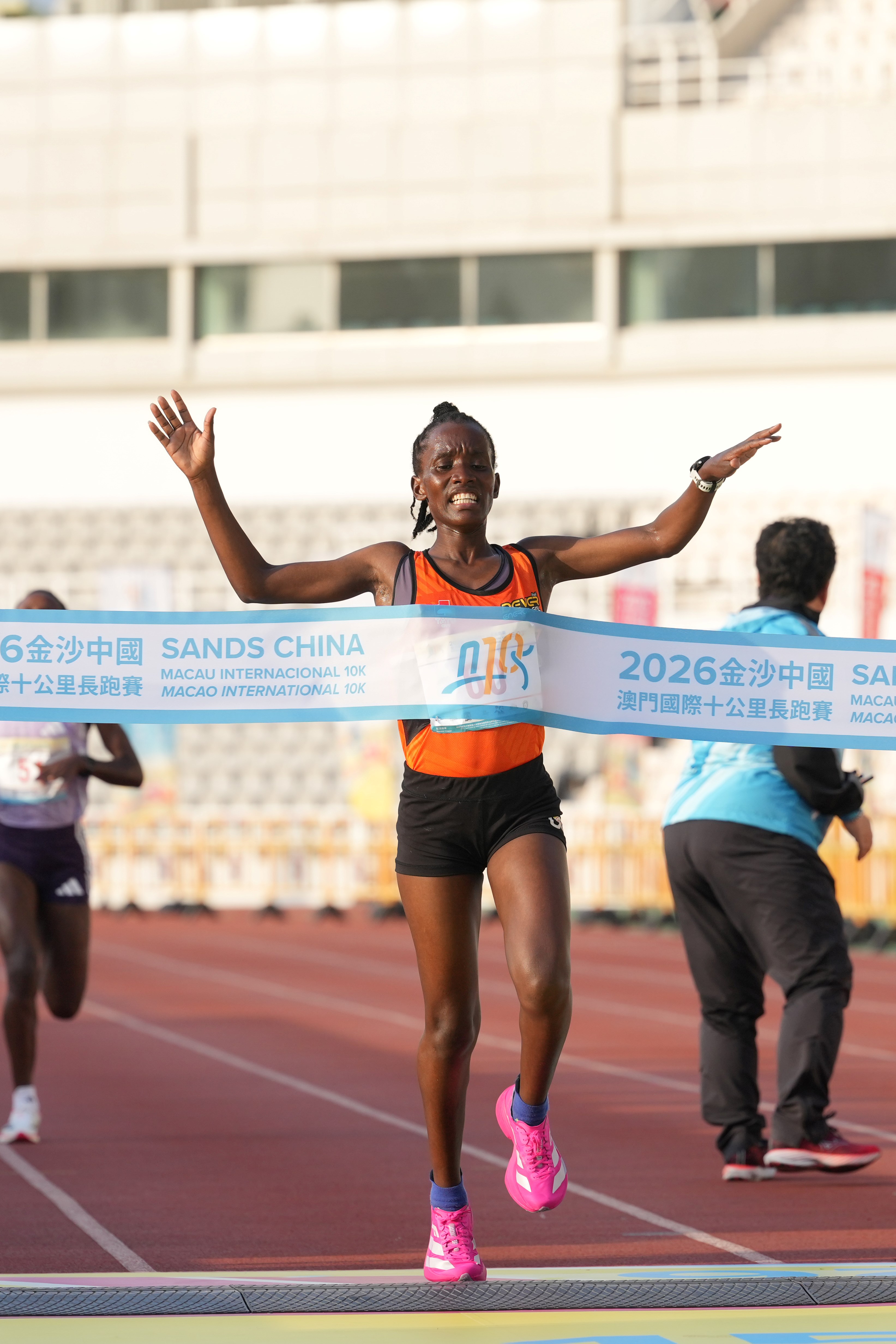 由體育局、金沙中國有限公司及澳門田徑總會舉辦的「2026金沙中國澳門國際十公里長跑賽」今(15)日舉行,十公里賽率先在上午7時進行,而歡樂跑則在上午7時40分起跑。經一輪角逐後,十公里賽男、女子全場總冠軍分別由來自埃塞俄比亞的艾斯發(Aklilu Gebremariam Asfaw)及肯尼亞的莫煒(Fridah Ndinda Mweu)奪得。